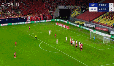 第4分钟,成都前场左侧定位球机会,韦世豪主罚似传似射平抽进禁区,前点罗慕洛虚晃一枪,皮球在门前弹地后直入网窝,韦世豪打进个人赛季第十球!成都1-0领先↓