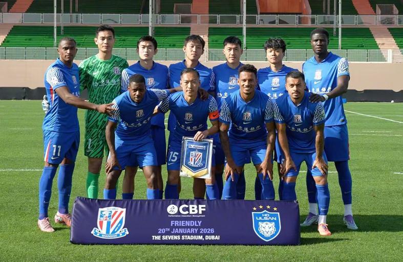 下半场开场不久,申花前场打出一次精彩的配合,米内罗妙传,刘诚宇高速插入禁区左侧,不停球直接打远角得手,申花1-1!但是,蔚山队一脚射门击中陈晋一腿上折射弹进网窝,最终申花1-2不帮蔚山HD,前两场热身赛1平1负。北京时间1月23日晚,申花对阵俄超强队莫斯科迪纳摩。